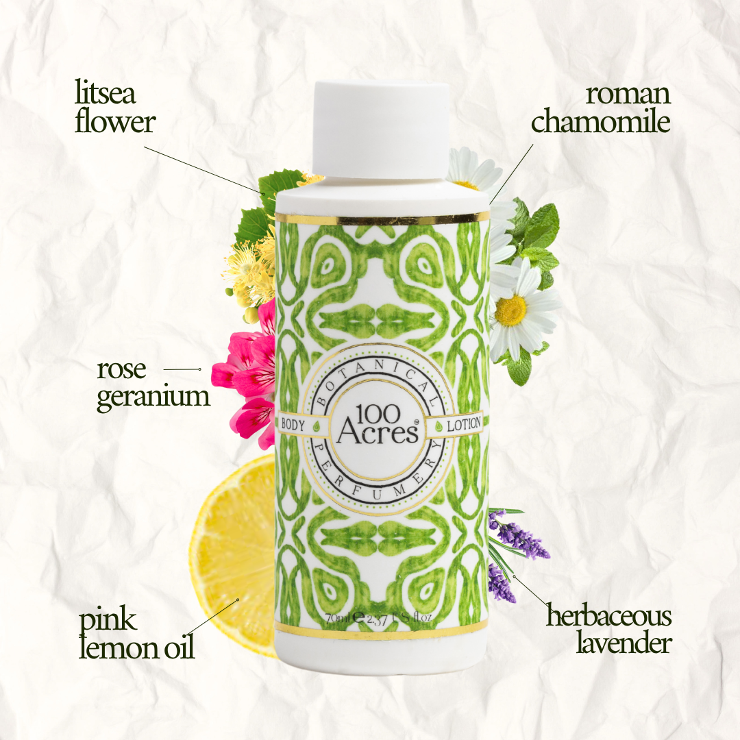 Meet the 100 Acres Discovery Set – a beautiful introduction to our heavenly botanical world. This luxurious mini collection features four of our best-selling bath and body products in perfectly petite 70ml sizes — ideal for sampling, gifting, or taking away on your travels.