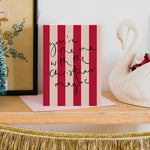 Featuring beautiful original hand lettering, this greetings card is printed on textured Italian cardstock on a contrast stripe background to pass on your festive sentiment in style.