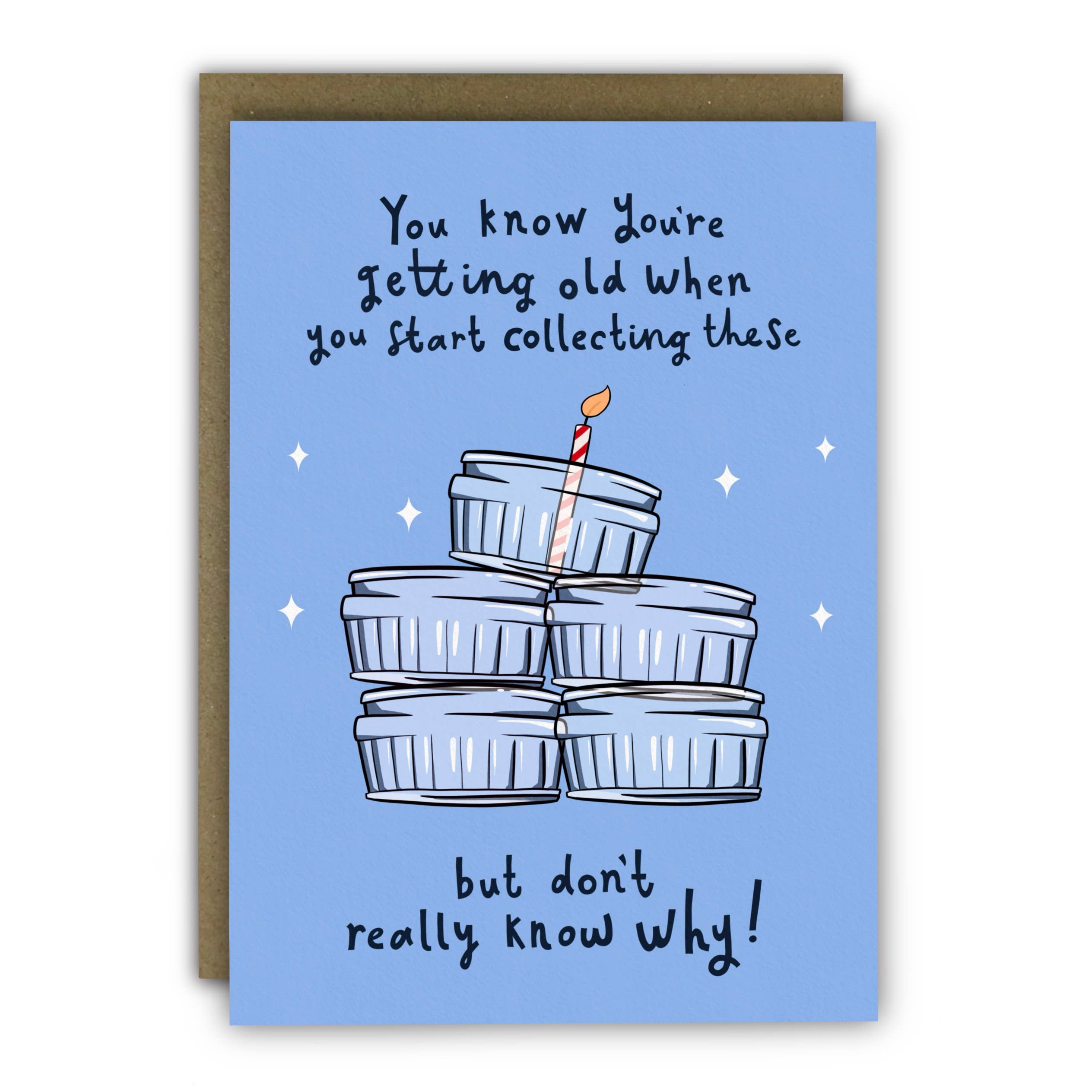 Funny Birthday Card - Gu Pots Glass Ramekin Collection Designed by me and printed in the UK. - 101mm x 152mm (4 x 6 inches) - Printed on premium high 350gsm, lightly textured card stock - Blank inside - Supplied with Kraft envelope - Both ‘Naked’ and Cellophane wrapped options are available - Individual product code and barcode printed on the back If you would rather send an eye-roll than a bunch of roses, Running With Scissors are the cards for you! Follow me on Instagram @runningwithscissorsdesign and drop me a line with any queries