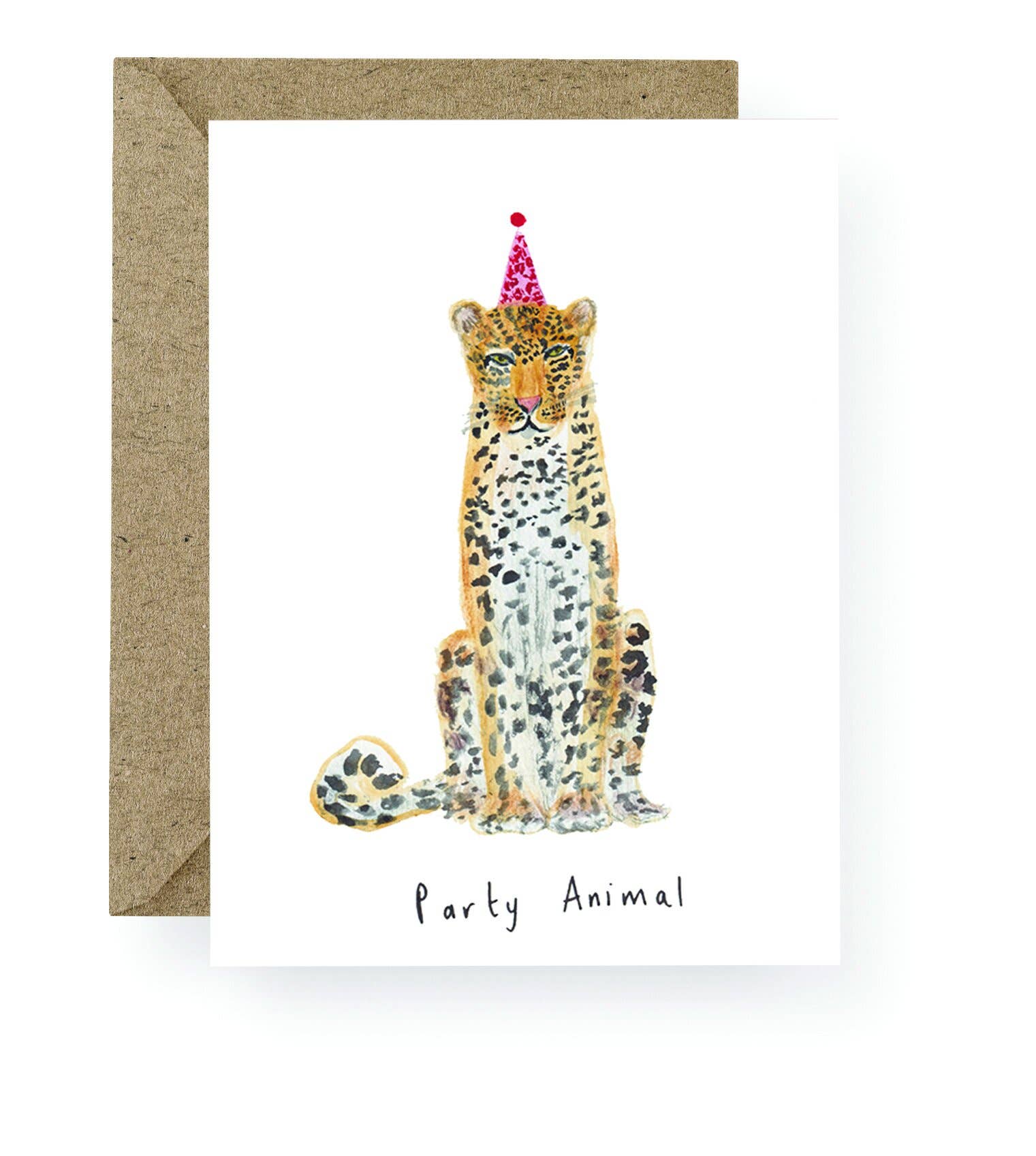 A Beautiful hand Painted Watercolour Leopard Greeting Card design from the 'Animal Party' greeting card collection