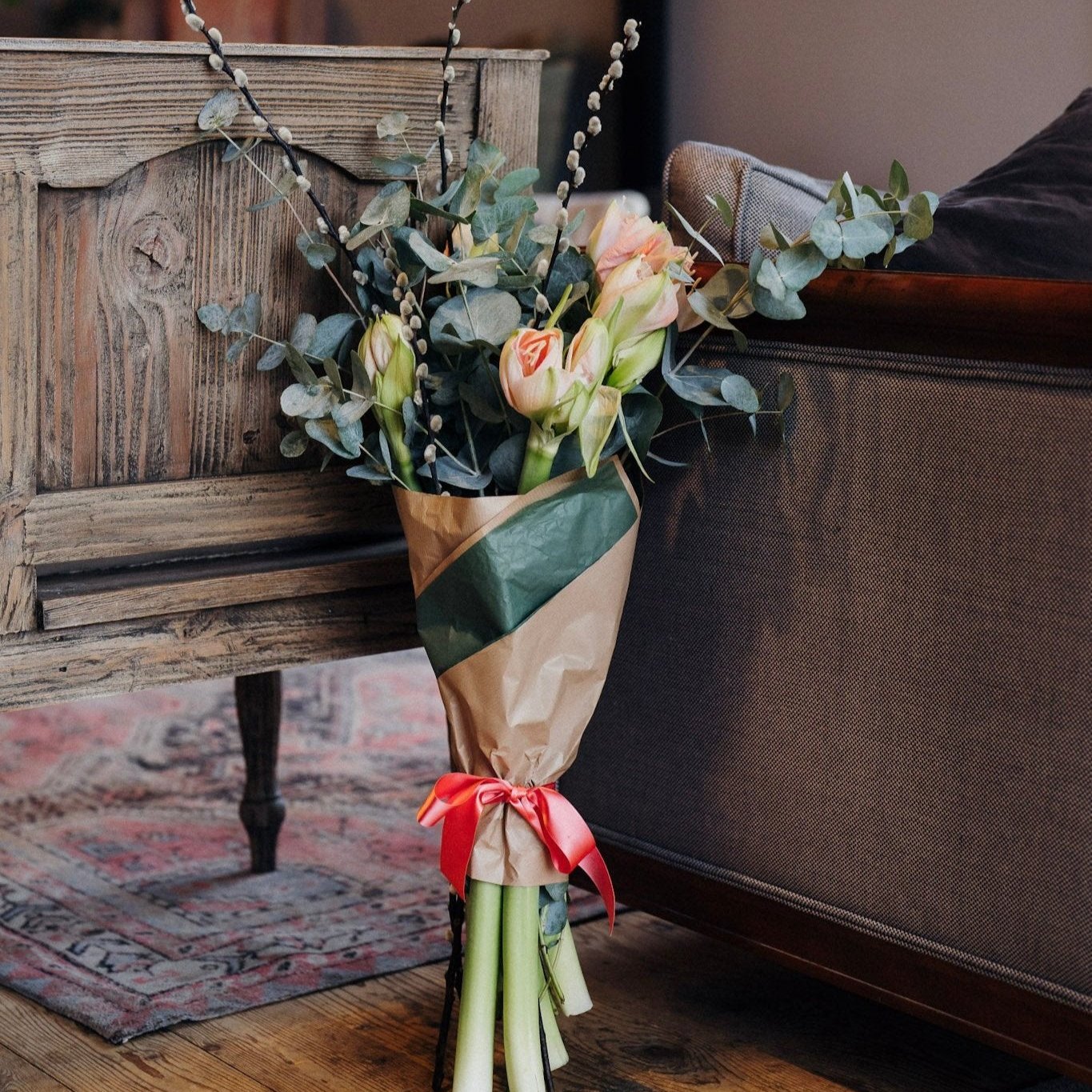Designed for true flower lovers, our Amaryllis & Eucalyptus Luxury Flower Gift Wrap is a celebration of seasonal beauty and natural elegance. Each wrap includes striking Amaryllis stems, fresh Eucalyptus, and soft Pussy Willow, carefully presented as a luxurious bundle of fresh flower stems for you (or someone special) to arrange at home. Perfect for gifting or self-indulgence, this florist-curated Christmas flower wrap brings texture, scent, and timeless style to any space — a thoughtful treat for those who love creating their own floral displays.