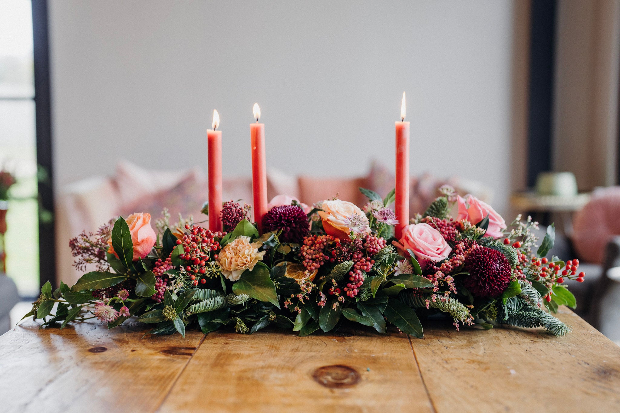 Our Liberty Luxe Festive Tablescape is a sumptuous celebration of festive indulgence — designed to bring warmth, colour, and opulent texture to your Christmas table. Rich apricot and marsala red tones are artfully woven together through roses, amaryllis, astrantia, skimmia, and pink pepperberry, nestled among a lavish array of scented seasonal foliage.