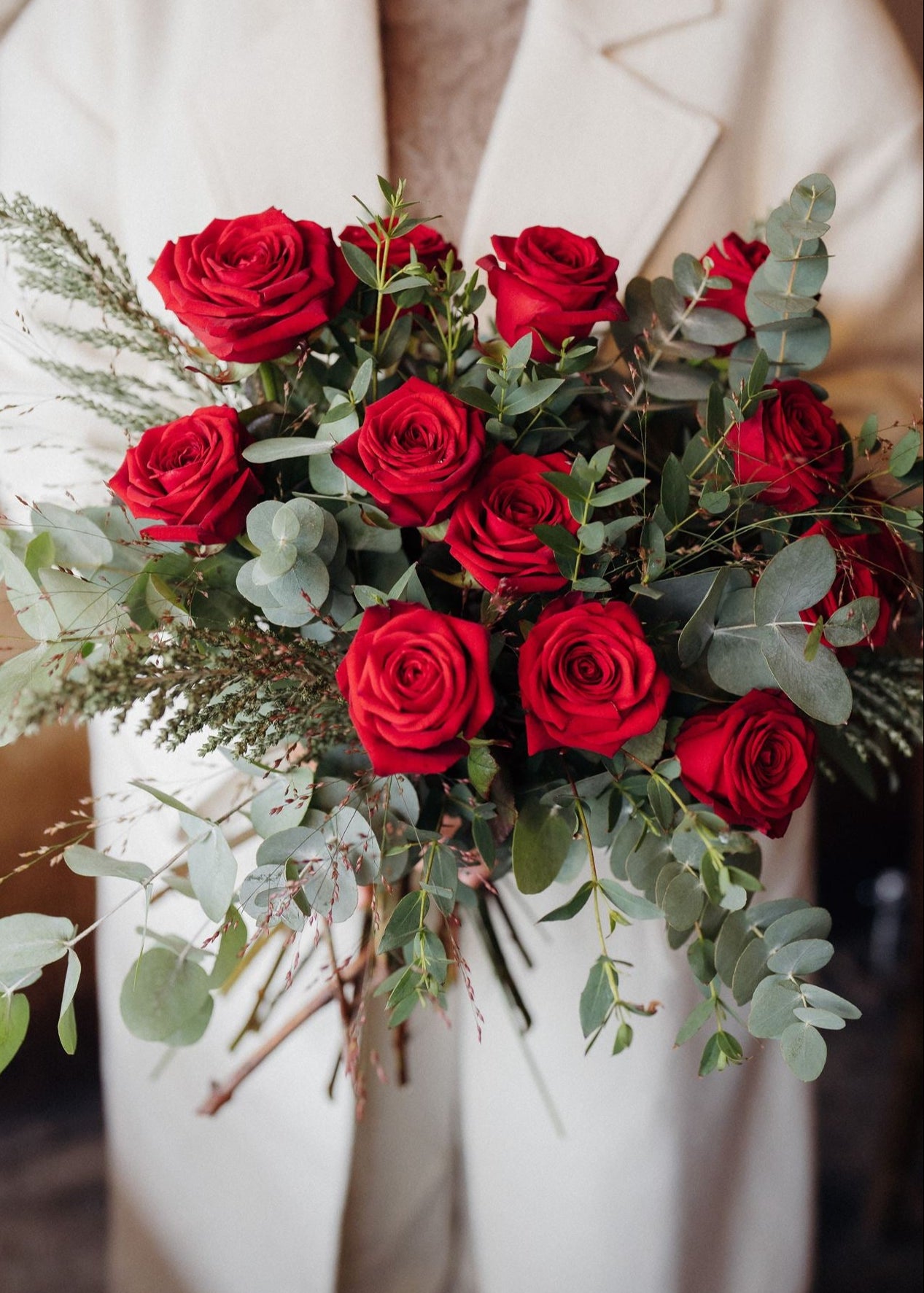 Scarlett Statement Bouquet | Luxury Red Rose & Eucalyptus Christmas Bouquet