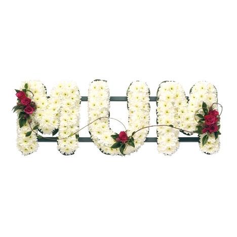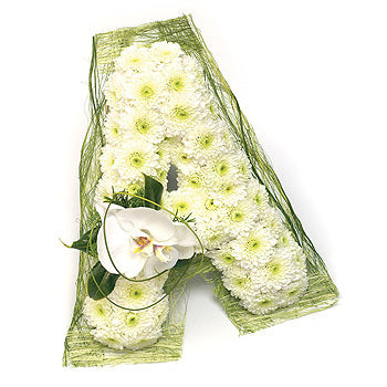One is a massed arrangement in a solid white base colour with a separate spray of blooms on one or more letters of your choice. The other option would be letters designed in a loose style also known as open letter tributes. In this instance any colour from our various colour options can be choosen.