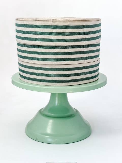 Cotton Ribbon Multistripes Linen/Forest Green 35mm width
