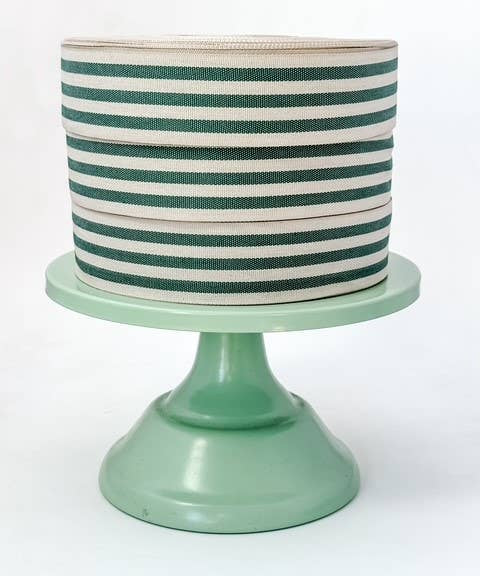 Cotton Ribbon Multistripes Linen/Forest Green 35mm width