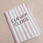 Clever clogs congratulations card with pink stripe design