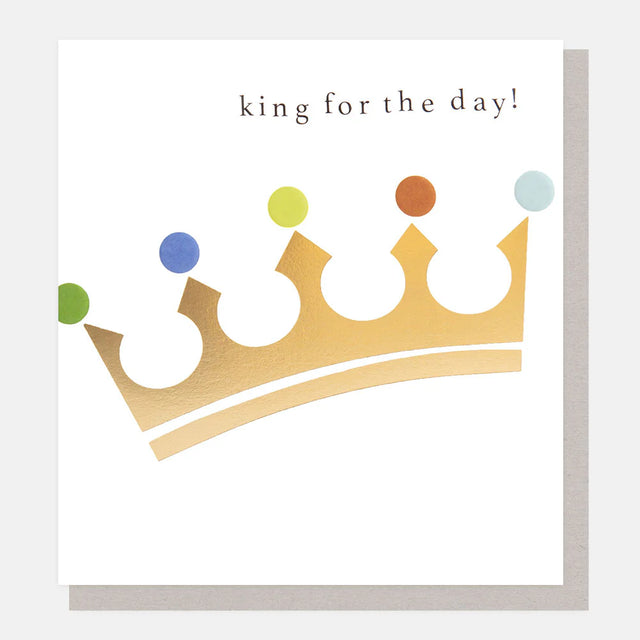 Make him feel like royalty with this striking “King for the Day” gold crown card — the perfect choice for birthdays or Father’s Day. Part of our elegant Golden range, this design combines understated style with a celebratory edge.