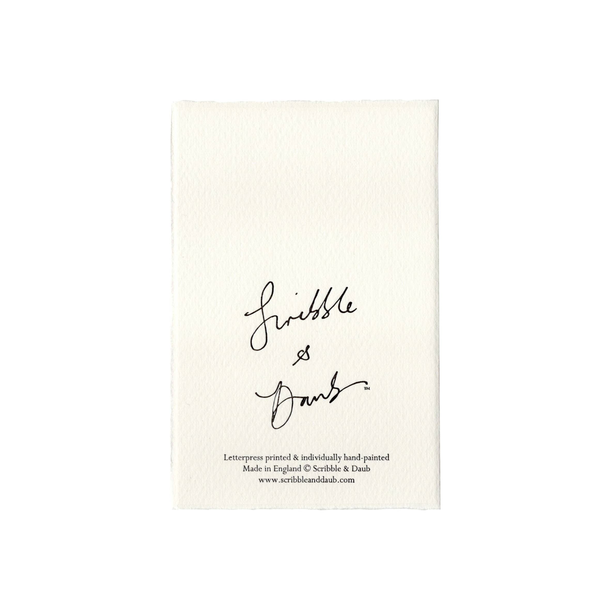 Each card is letterpress printed from original dip pen and ink drawings, then individually hand-painted using richly pigmented inks inspired by Andy Warhol.