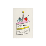 Celebrate in style with this charming “Make A Wish” birthday cake card, featuring a joyful, hand-drawn cake illustration—perfect for marking a special day.