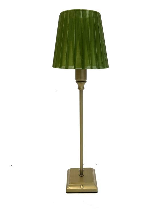 Antique Bronze Rechargeable Table Lamp with Pleated Green Shade