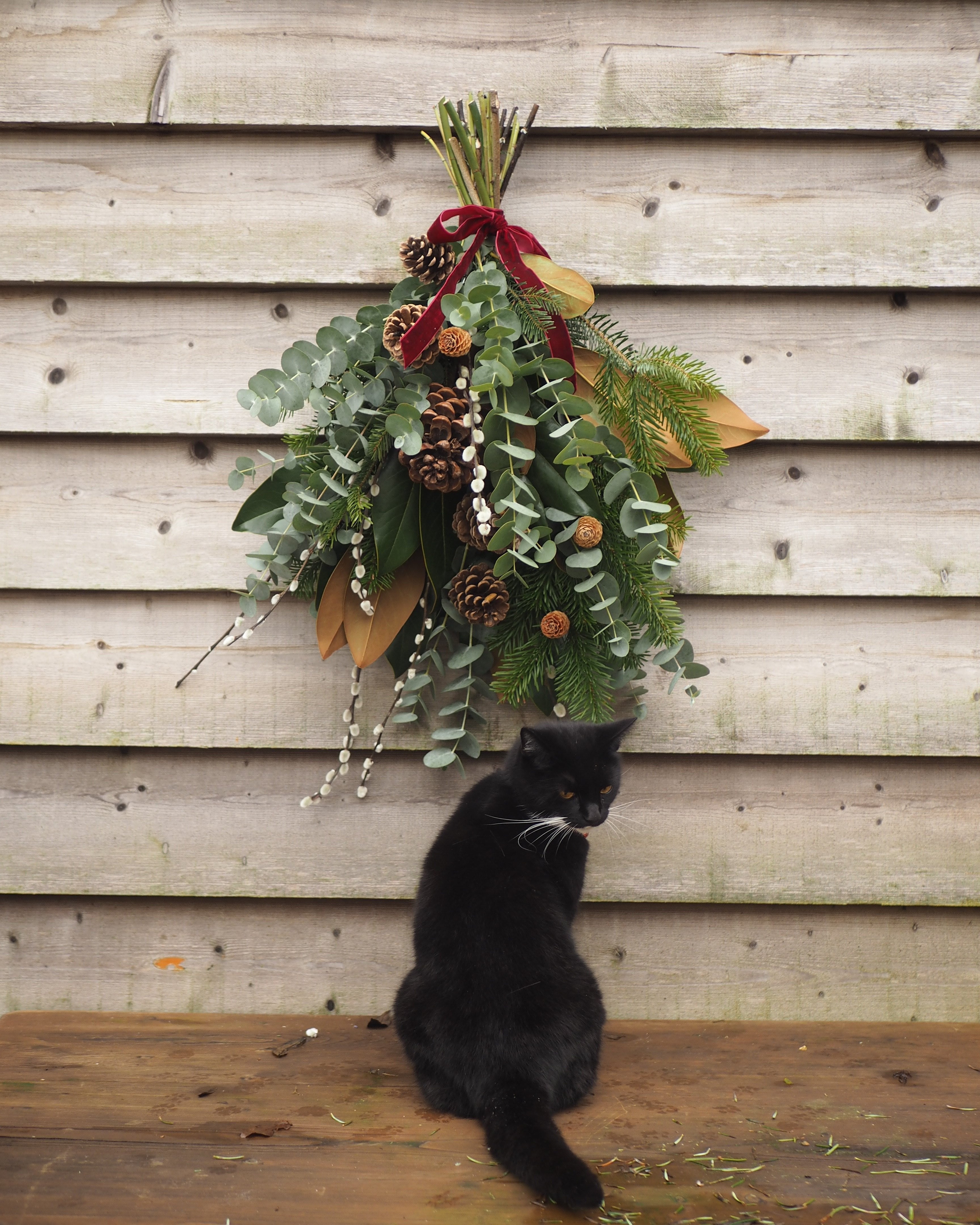 Perfect for adding a refined, natural touch to your front door, this cascading arrangement is a beautiful alternative to a traditional Christmas wreath. To keep it looking fresh and full of life throughout the season, simply spritz with water every few days.