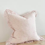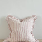 Hallie Ruffled Linen Cushion Cover 45x45cm – Pink Stripe
