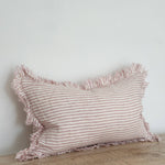 Add effortless charm to your home with the Hallie Ruffled Linen Cushion Cover in soft pink stripe. Crafted from 100% stonewashed linen, this 45 x 30cm cushion filled with feathers brings relaxed texture and timeless style to sofas, armchairs and beds alike.