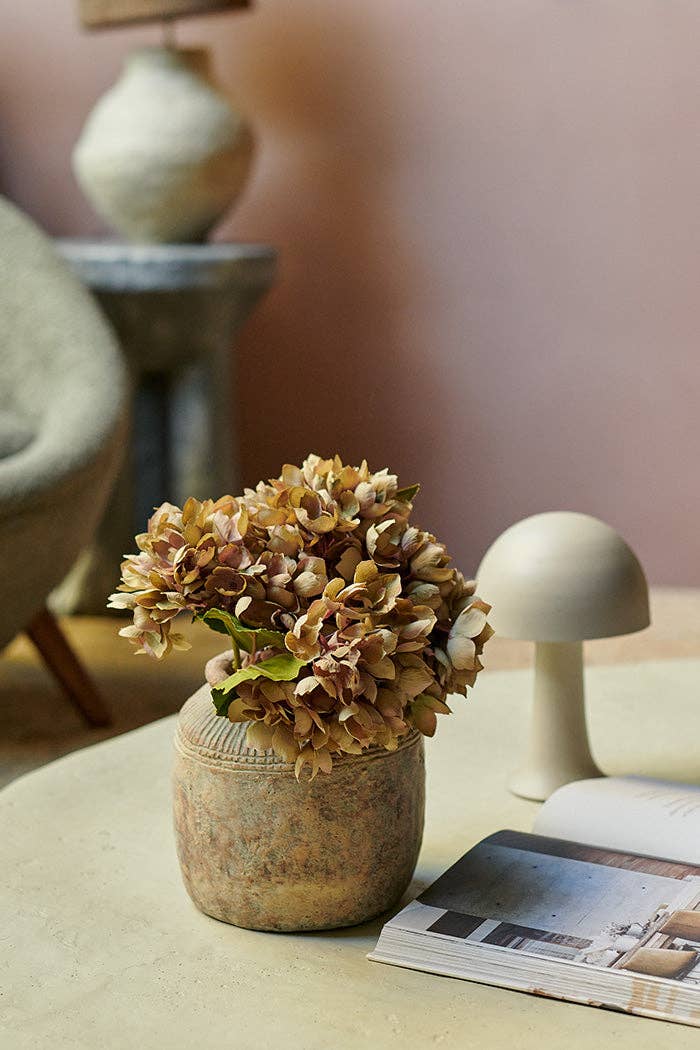 Its sculptural silhouette and muted tone make it a versatile addition to any interior — from rustic minimalism to contemporary elegance. Perfect for displaying dried stems, faux florals, or simply as a standalone statement, this textured decorative vase brings quiet sophistication to shelves, coffee tables, and consoles alike.