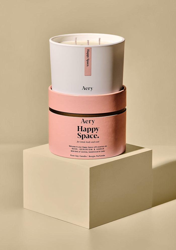 Fill your home with soft, radiant floral goodness. Aery’s bestselling Happy Space fragrance is a joyful blend designed to lift the spirit and soothe the soul. Infused with rose essential oil, it inspires positivity and calm, while warm undertones of amber, sandalwood and patchouli bring depth, comfort and balance.