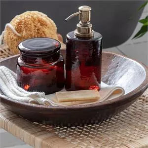 Bring artisan charm to your home with the Nkuku Ilcoso Recycled Glass Storage Pot in Amber. Perfect for your bathroom, bedroom, or dressing table, this beautifully handcrafted piece blends sustainability with timeless design.