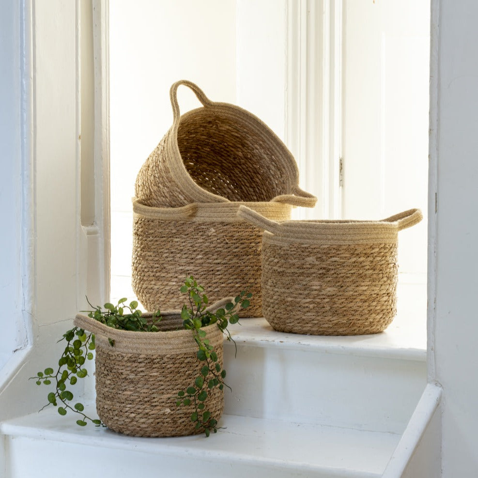 Use these fabulous Straw and Corn Baskets with rope braids as storage containers throughout your home. You can never have too much storage and these lovely natural baskets will be a stylish addition to any room in your house. They are a chic way of decluttering any space and adding a rustic yet practical feature to your interior.