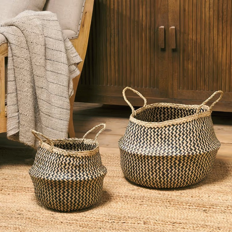 Crafted from sustainably sourced seagrass, its striking black and natural zigzag weave adds warmth and character to any room. Lightweight yet sturdy, it’s ideal as a decorative planter, shoe basket, or stylish home storage solution for blankets, toys, or everyday essentials. When not in use, it folds flat for easy, space-saving storage.