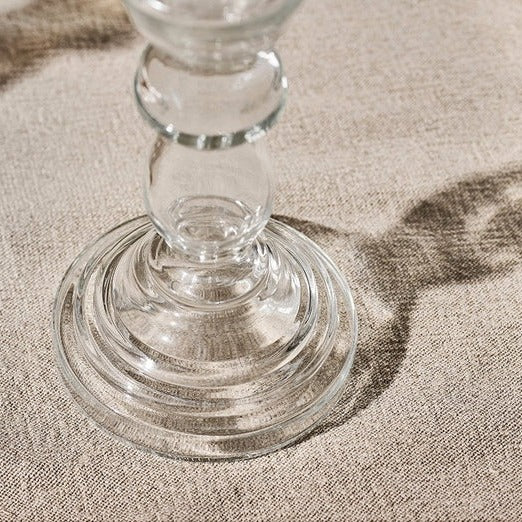The result is a sustainable and stylish design that adds understated beauty to any setting. Perfect for displaying taper candles, this clear glass candlestick brings a soft, glowing light to your dining table, mantelpiece, or sideboard.