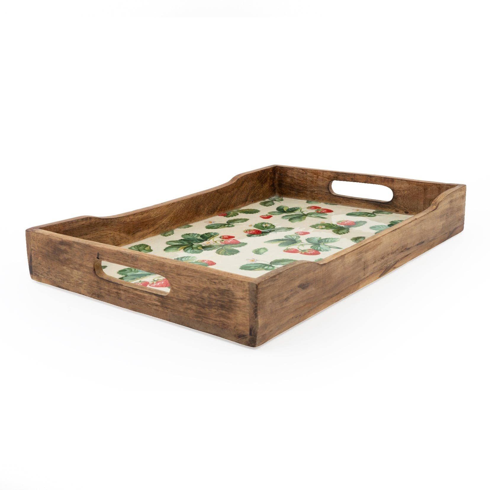 Handcrafted Rectangular Tray Mango Wood - Strawberries 45cm