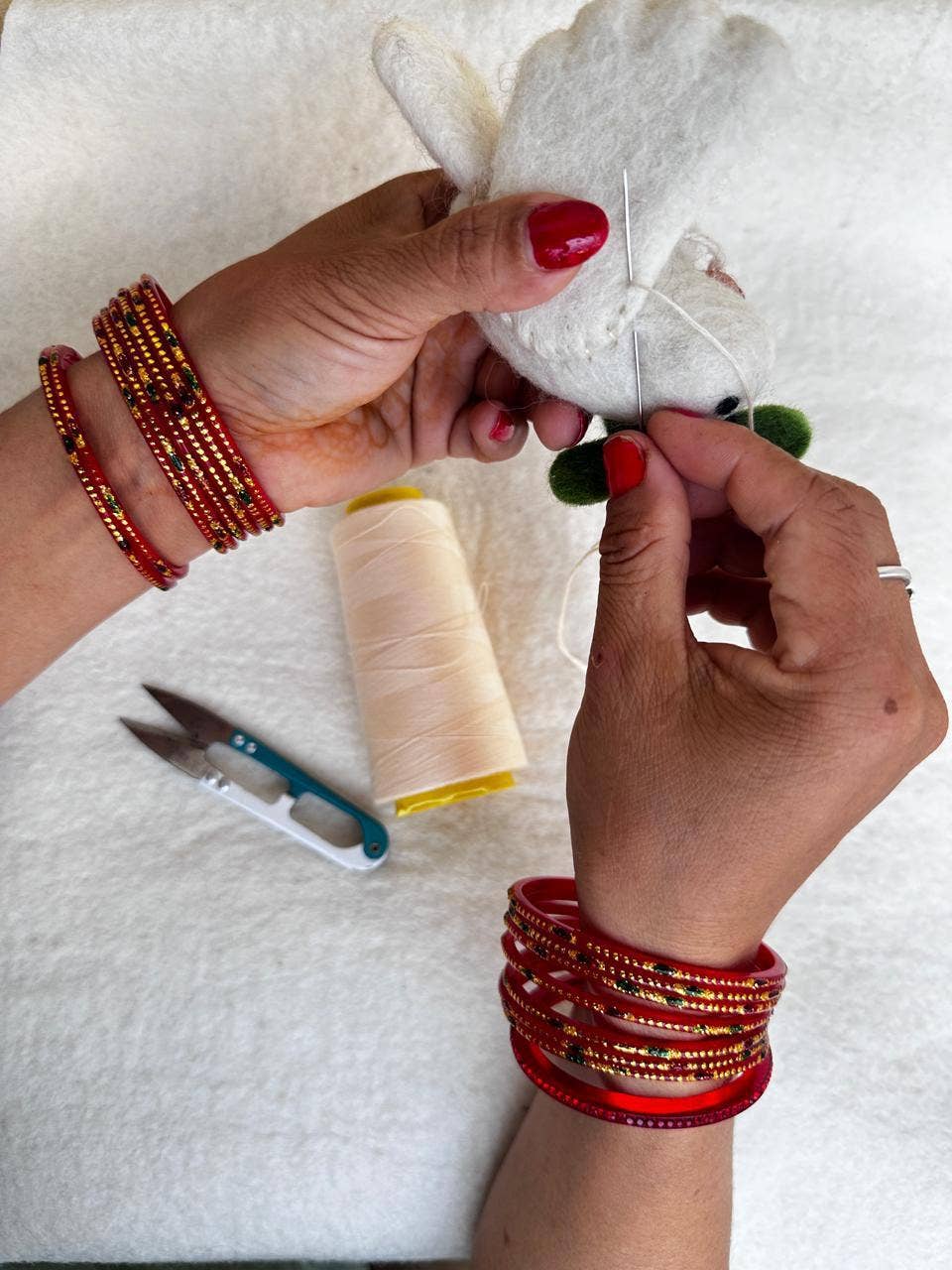 Our elegant Dove has flown in for the season to help with all your mistletoe needs. Made with wet felting techniques - the tail, wings and mistletoe sprig have all been lovingly handstitched to the Dove's body. Hanging this in your home is sure to bring you many Christmas kisses this season!