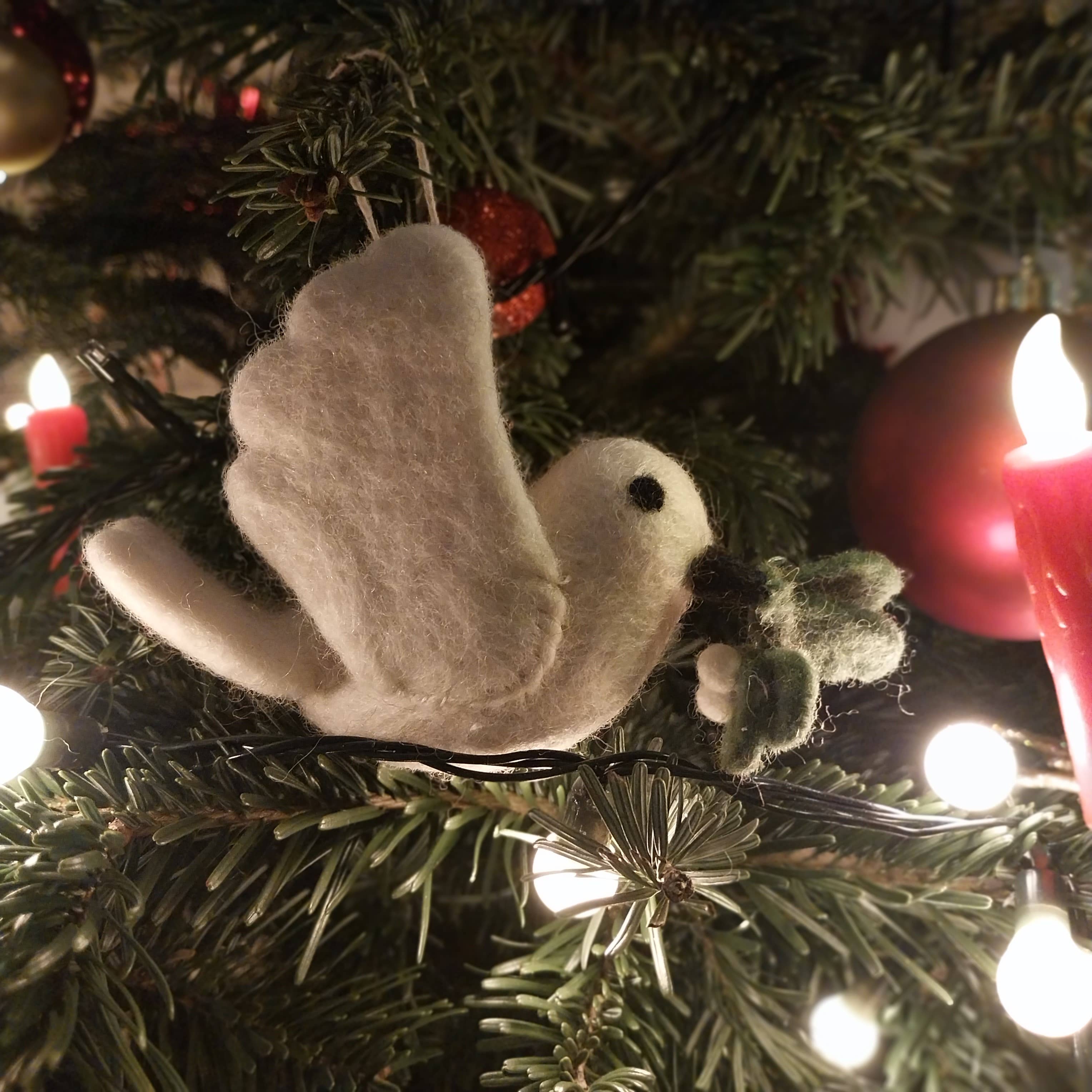 Handmade Felt Mistletoe Dove Decoration | Hanging Christmas Dove Ornament