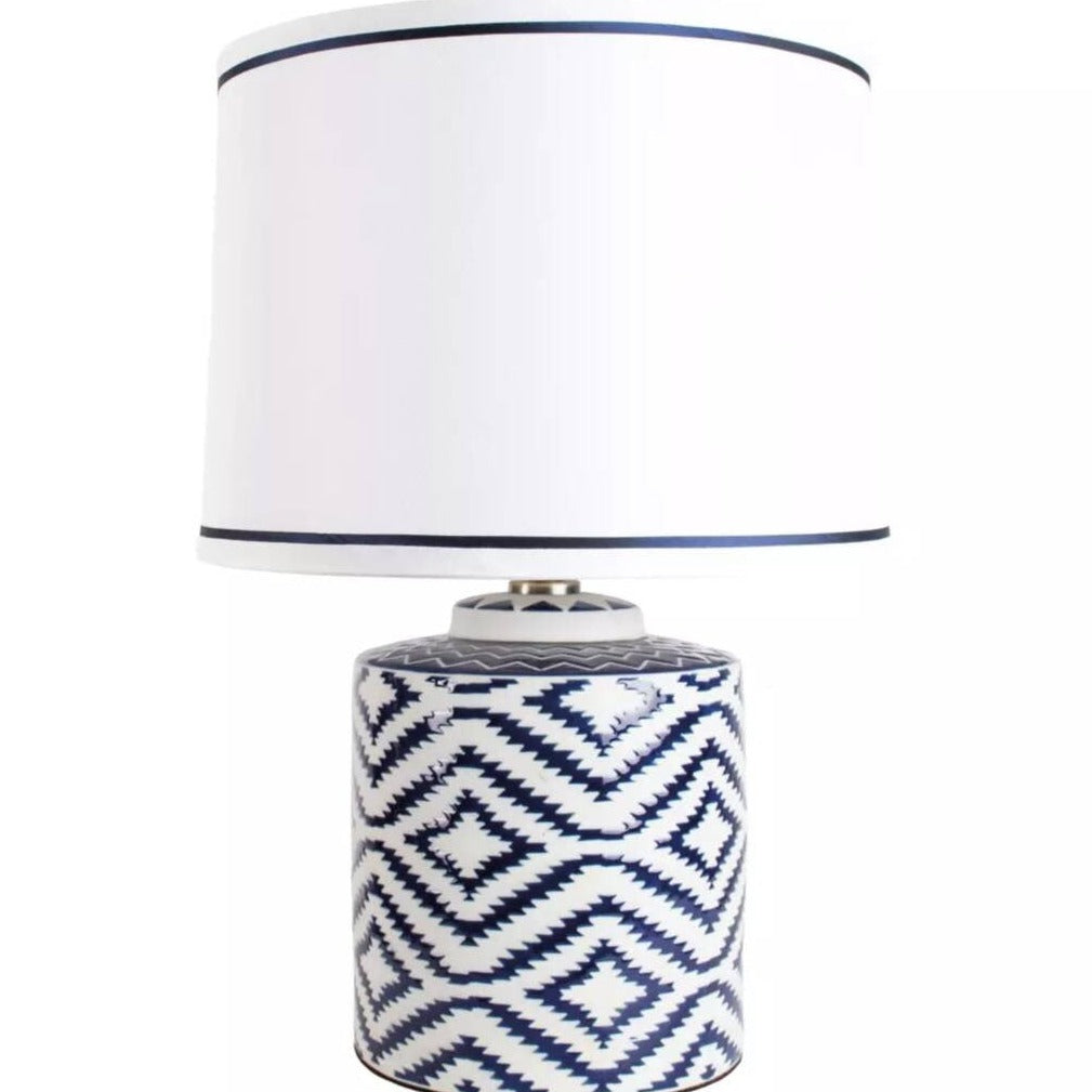 Perfect for any style of décor, from modern minimalist to vintage chic, this piece not only illuminates your space, but also doubles as a statement piece. Whether placed in a living room, study, or bedroom, this French blue ikat ceramic lamp exudes style and charm in equal measures.