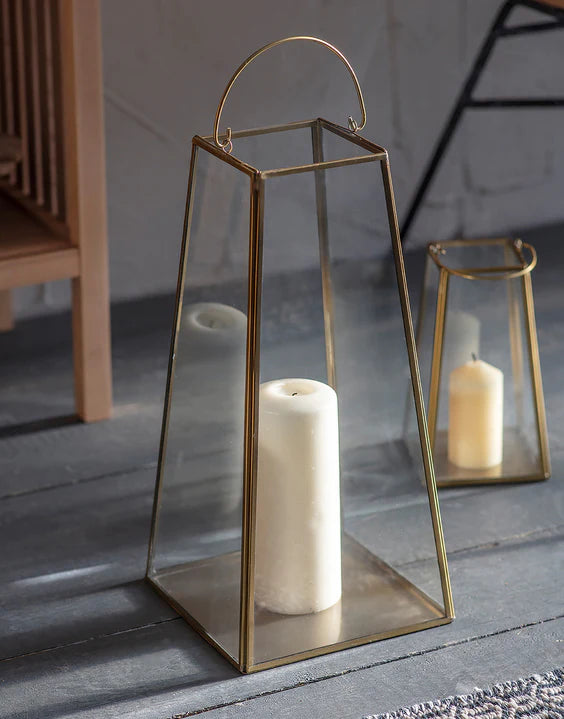 Elegant with a relaxed bohemian feel the Ablington Lantern is crafted in glass and powder coated steel, with a black felt base. Suitable for use with pillar candles and tea lights (not included).