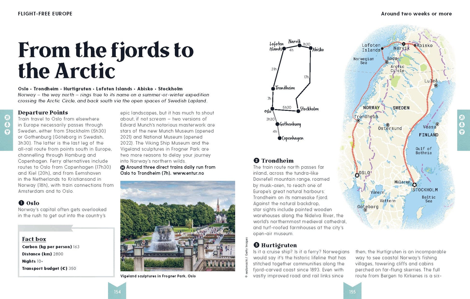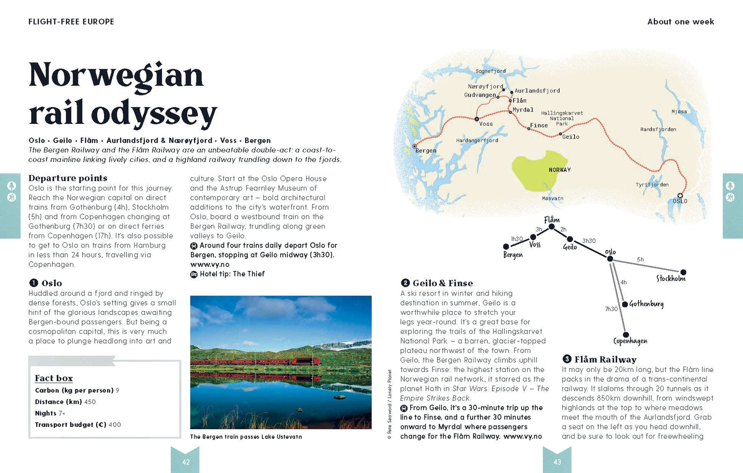 - 80 no-fly itineraries each of which features suggested ways to get to the start of the route, comprehensive transport connection guidance, vibrant photography, a map and fact box which details the trip’s carbon count, suggested duration and transport budget