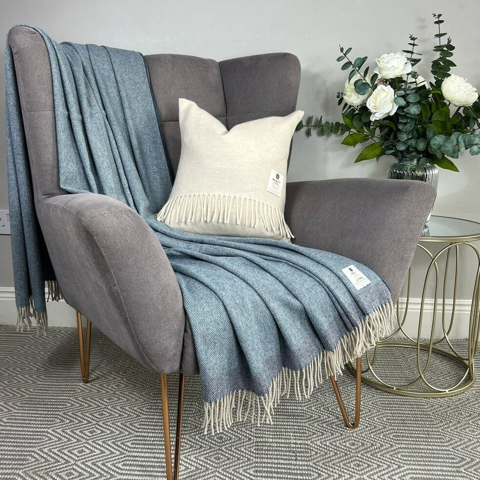Situated in a coastal village, we can’t help but draw inspiration from the Atlantic Ocean. This Sea eco throw is woven from yarns which are spun from recycled wool garments. It celebrates the ever-changing hues of the tide.