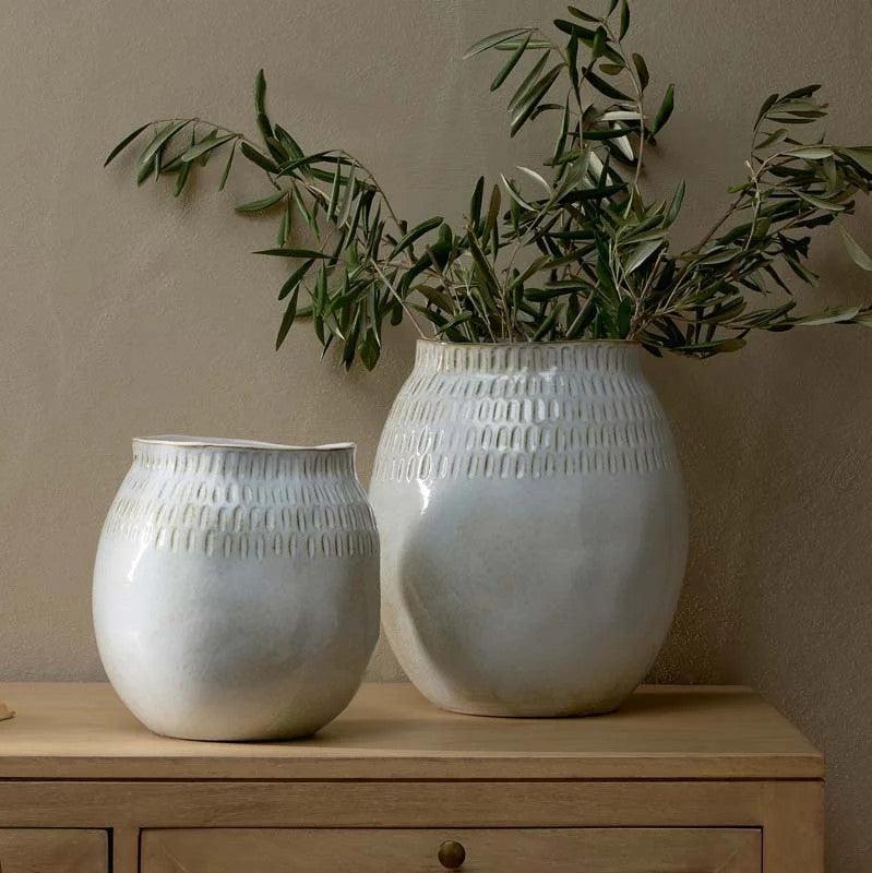 Off-White Reactive Glaze Ceramic Vase – Anjuna Collection