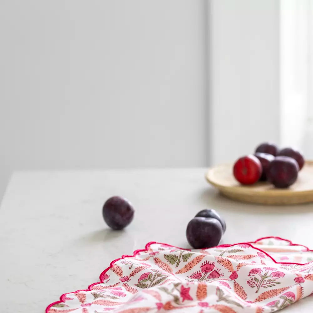Pair of Scalloped Himalayan Wildflowers Pink Hand Block Print Napkins