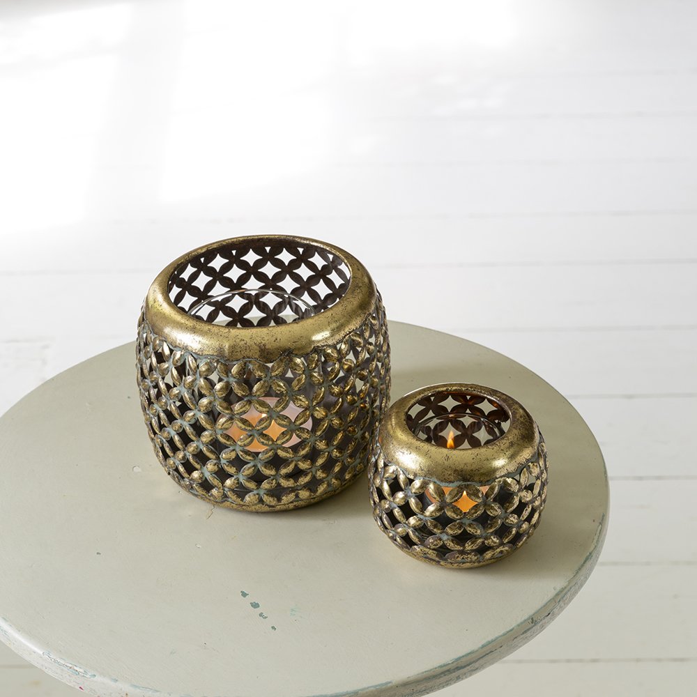 Dazzle your chosen room with a beautiful, pattered glow when you pop a tea light in our fabulous Pomme candle holder. Available in two different sizes, these charming rustic metal votives are perfect for decorating a dinner party table setting or just having around the home to incorporate a warm and cosy atmosphere into your interior.