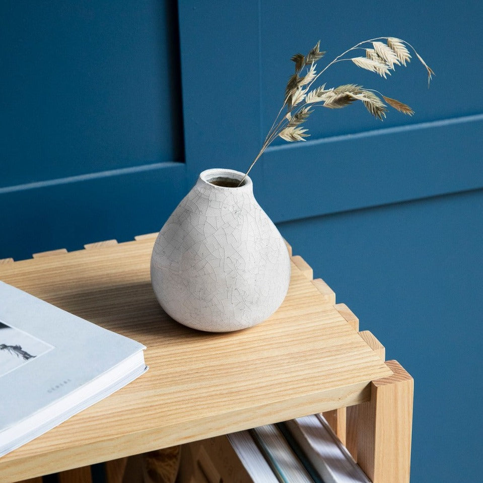 Introducing the newest addition to our Italian-inspired range, the Ravello Bud Vase; a small piece with big style! Sit it on a side table, desk or console and add a floral touch to even the tiniest nooks and crannies in your home. Our Ravello Bud Vases distinctive neutral colour and subtle crackle glaze sits in perfect contrast on our raw wood furniture pieces. Featuring black rubber foam pads on its base to protect surfaces, it looks great on a shelf with a single stem, or arranged in a cluster with other vessels, in the centre of a table.