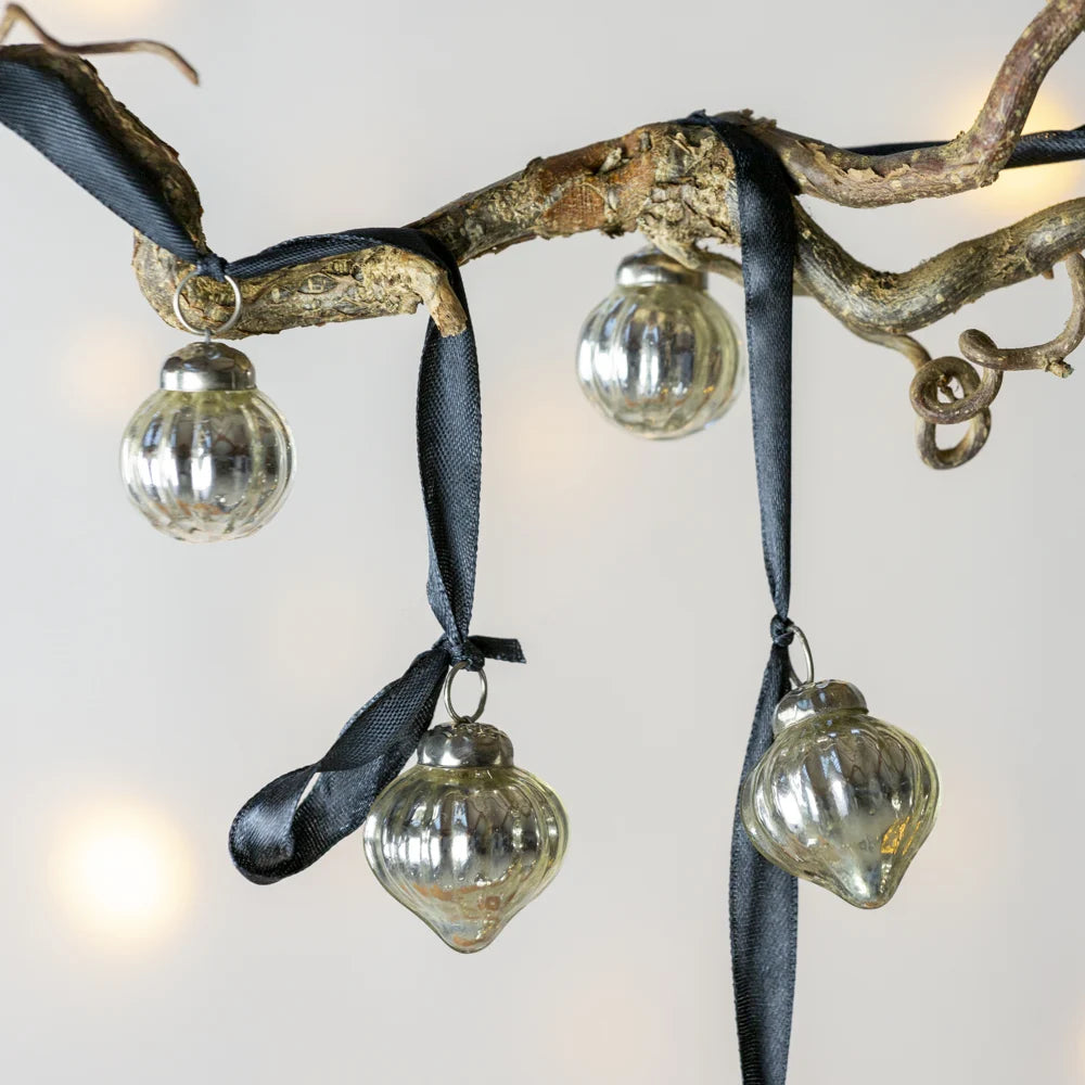 Intertwine into a foliage garland across a mantlepiece or staircase or hang from an exposed beam, these stunning silver decorations which are presented upon a black ribbon, will add style and class to your Christmas display and could even be wrapped around a little Christmas tree to save the hassle of hanging individual decorations!