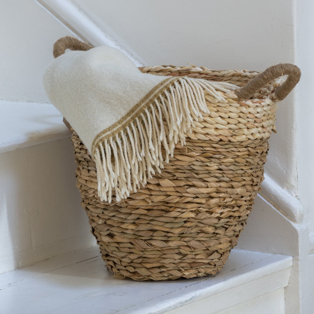 Straw & Corn Woven Basket – Natural Stripe Storage & Planter