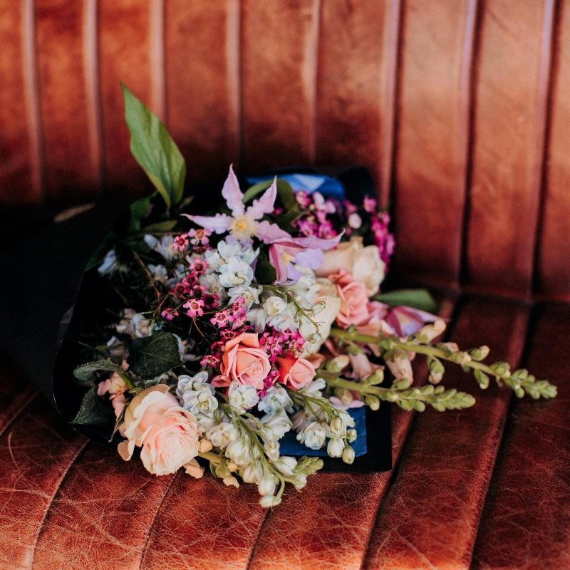 We’ll curate the perfect mix of flowers that sing together, wrap them up in classic kraft paper, and finish with our signature striped grosgrain ribbon.