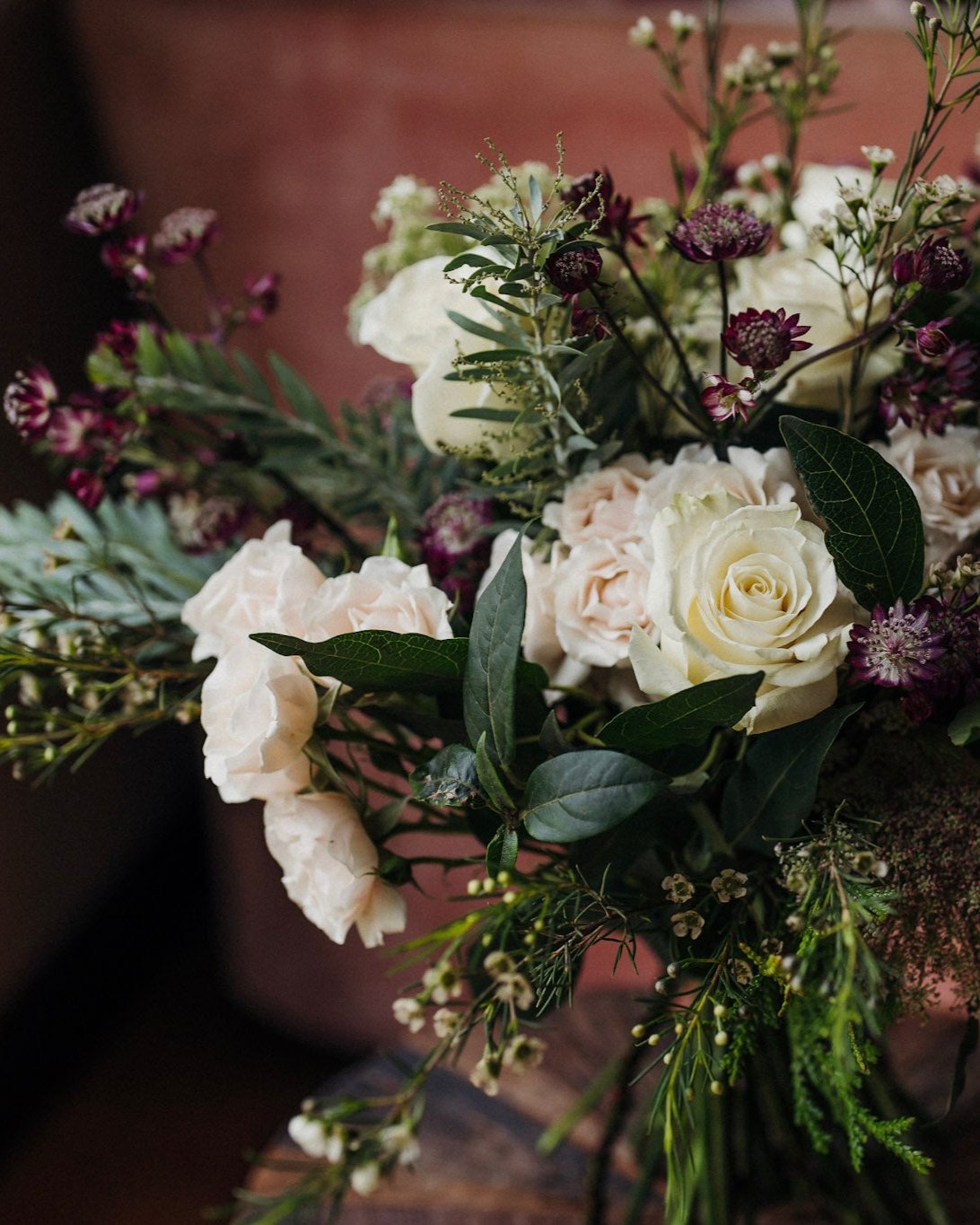Handcrafted by our expert florists, the bouquet features the finest seasonal white flowers, including luxurious roses, freshly selected from our flower bar on the day of your order. Subtle hints of deep maroon blooms are woven throughout, adding a passionate touch to this chic and elegant arrangement. Designed for effortless display, it’s ready to be placed in a vase and enjoyed by the recipient.