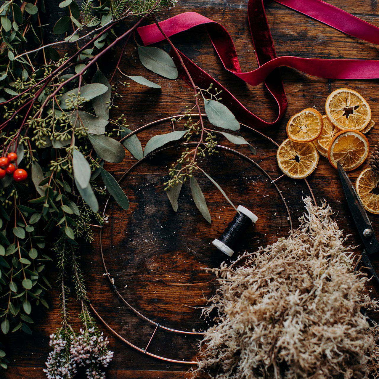 Guided by our expert florists, you’ll learn the traditional art of creating a fresh handmade Christmas wreath from scratch. Using fabulously fragrant foliage such as blue spruce, pine and eucalyptus, you’ll then layer in natural festive details — skimmia, pepperberries, pinecones, and dried orange slices — to design a wreath that’s both stylish and sustainable. No glitter or baubles needed, just pure festive beauty.