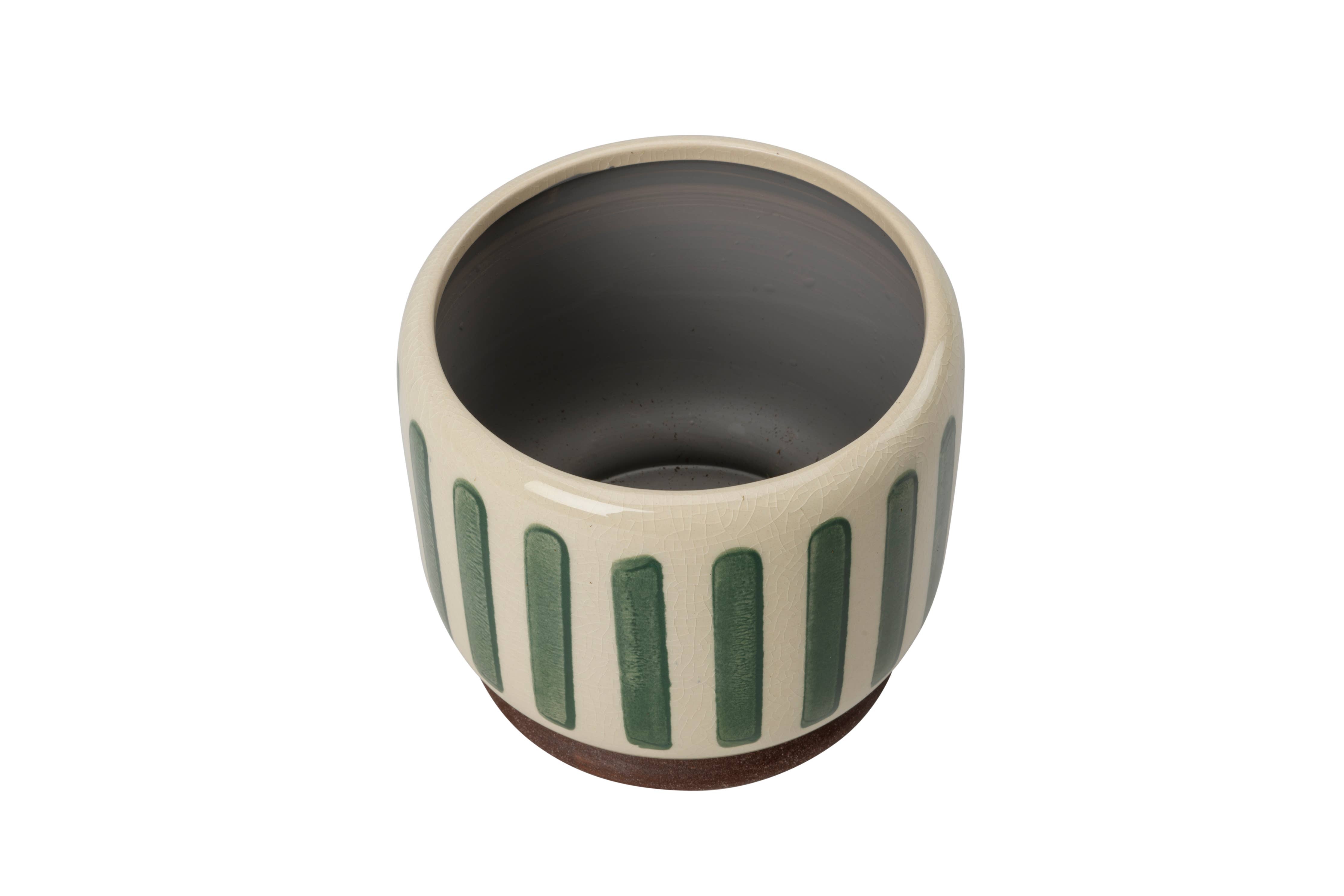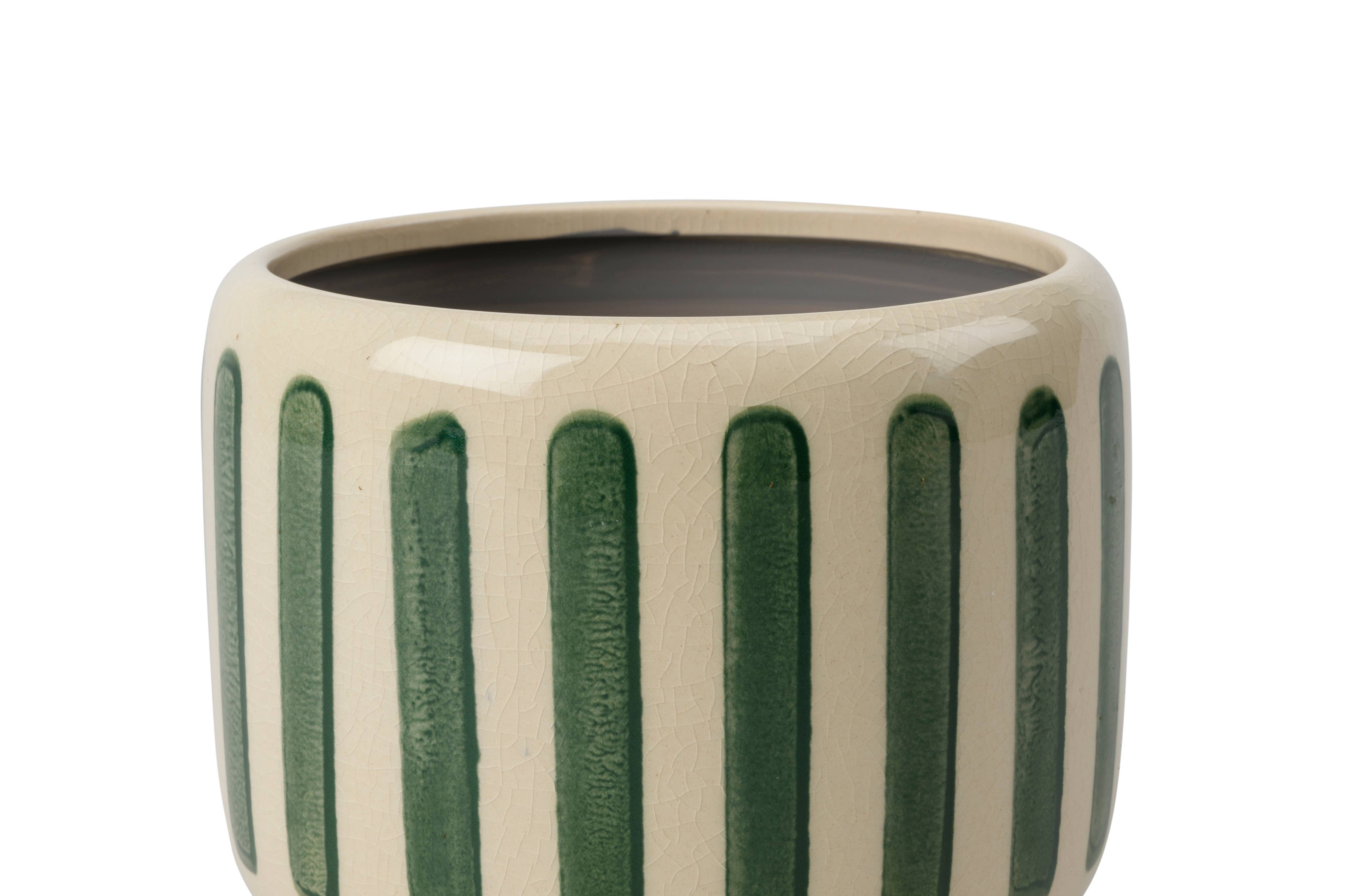 Crackle Glaze Green Striped Stoneware Plant Pot – 16cm