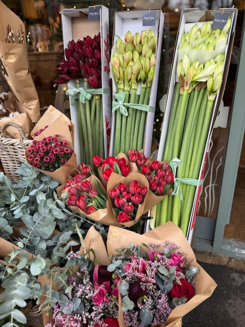 Make a statement this season with our box of 12 Amaryllis stems — bold, sculptural blooms that bring instant drama and sophistication to any space. Each stem stands tall and proud, bursting into large, velvety flowers that demand attention and admiration.