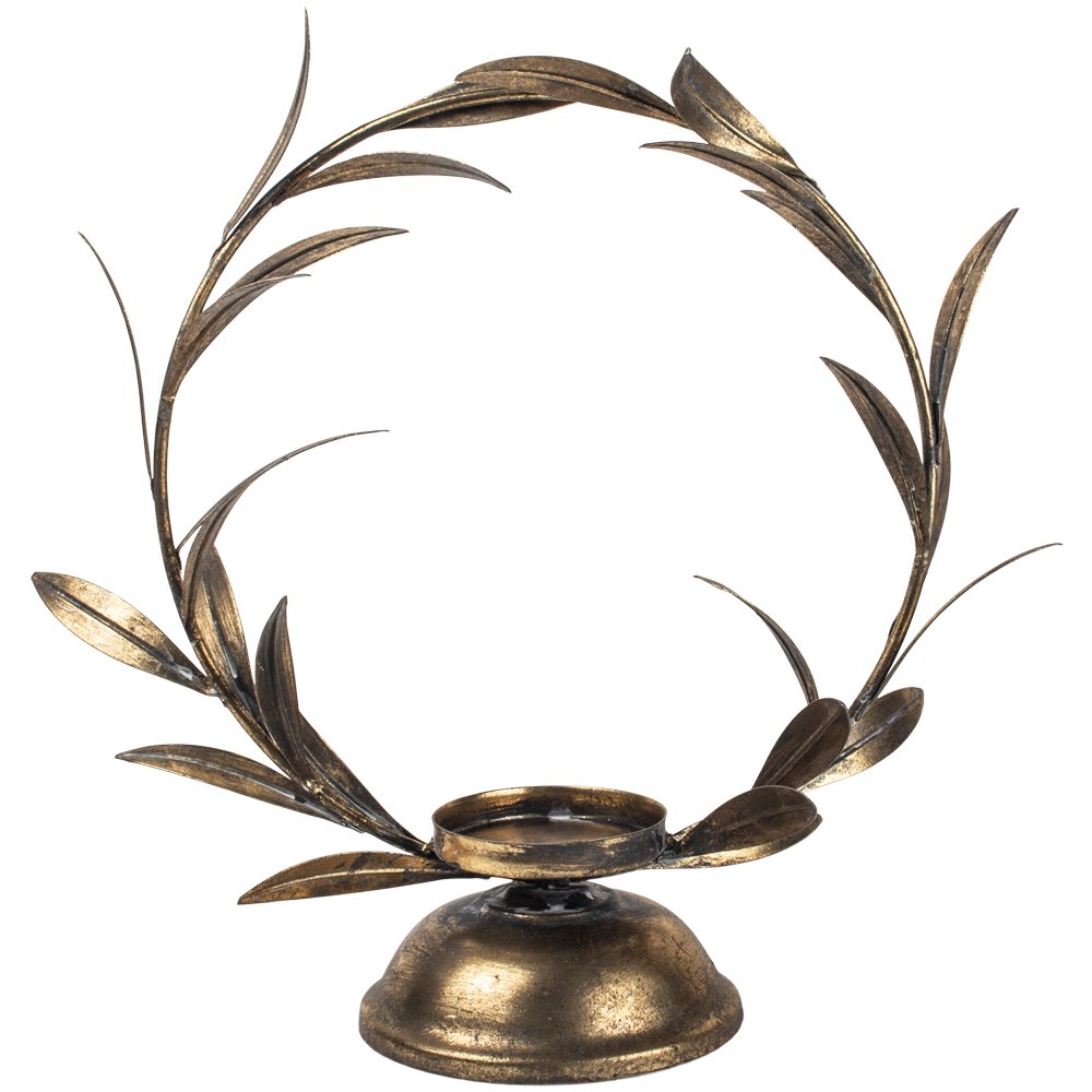 In a beautiful distressed gold finish, this Laurel Leaf Candleholder will become the showstopping centre piece at any dinner party. Decorate your table accordingly and place this in the middle, then fill with your favourite tea light to illuminate the ring of metal leaves and create a striking feature that your guests are bound to be impressed with!