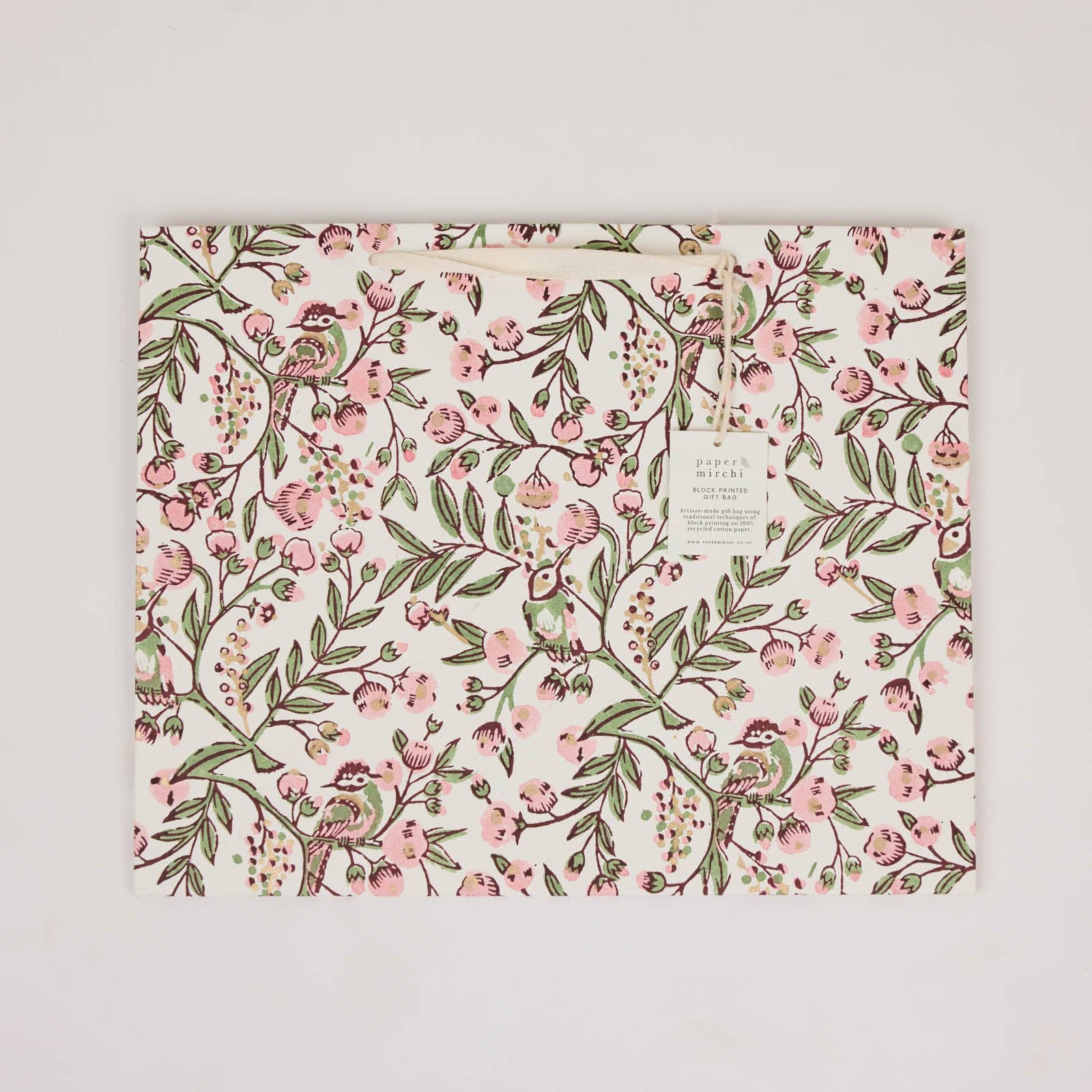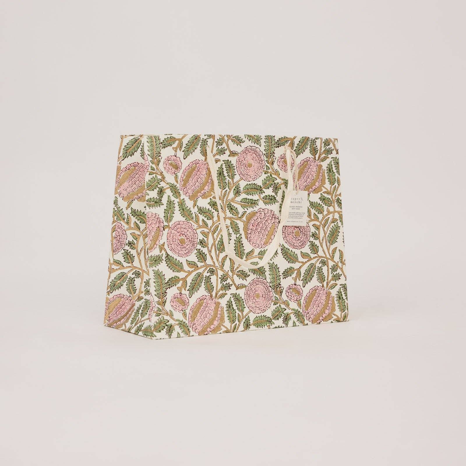 Every gift bag is hand block printed using traditional artisan techniques, meaning no two are ever quite the same. Subtle variations in print are part of their charm, turning each bag into a small work of art rather than a disposable extra.