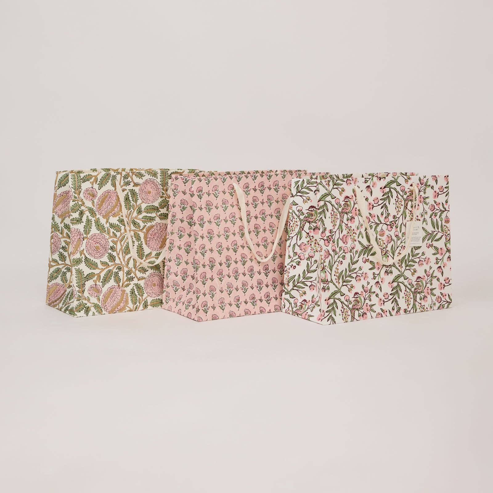 Hand Block Printed Gift Bags - Blush Refresh