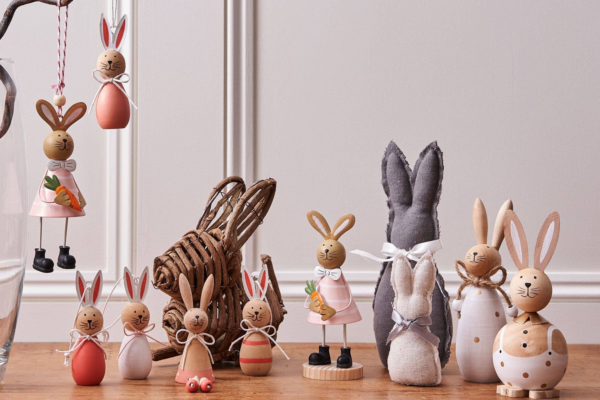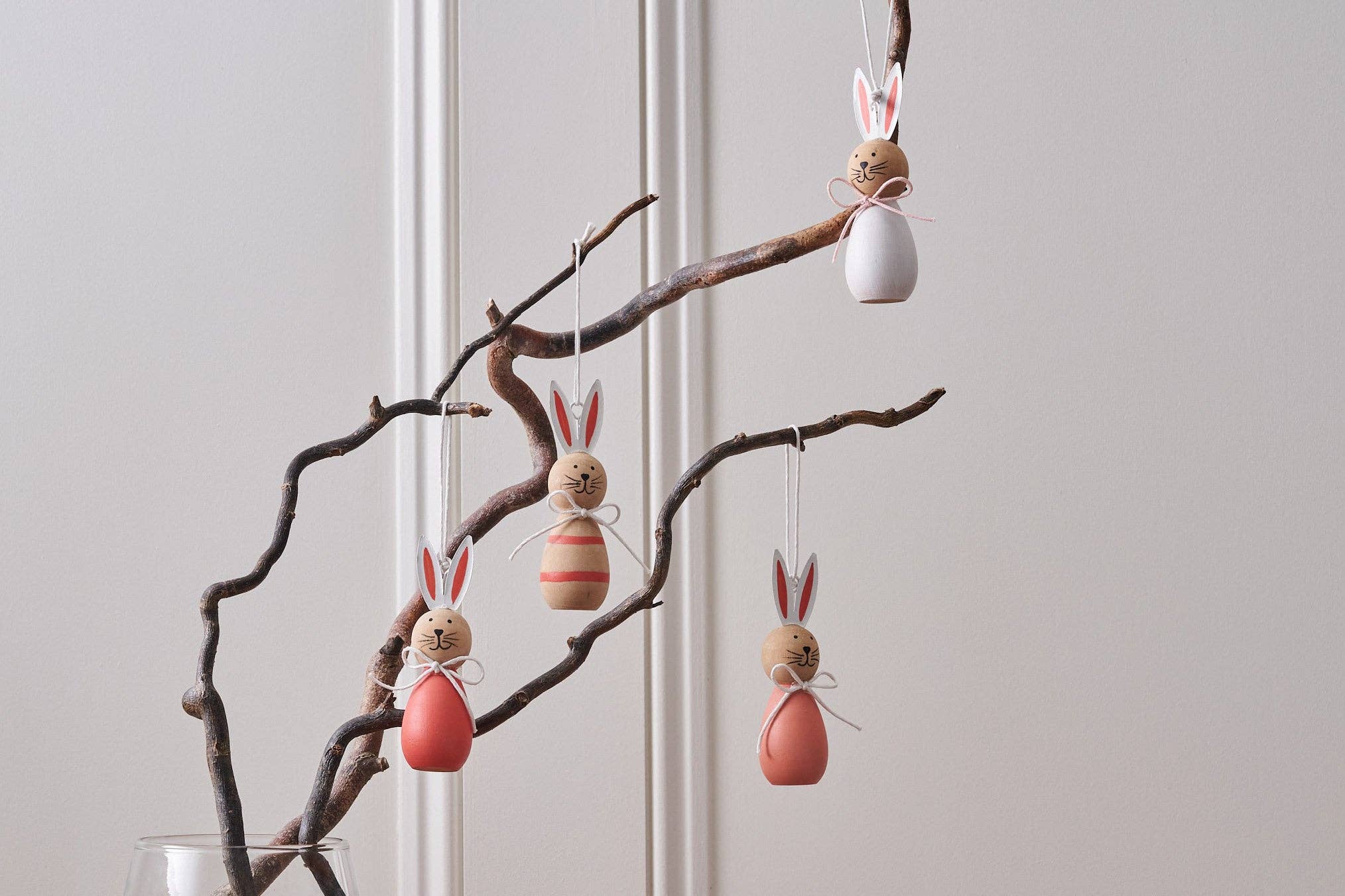 Crafted from wood and finished with delicate hand-painted details, each bunny features charming metal ears and comes in a gentle palette of coral, white and pink — perfect for adding subtle colour to your spring décor.