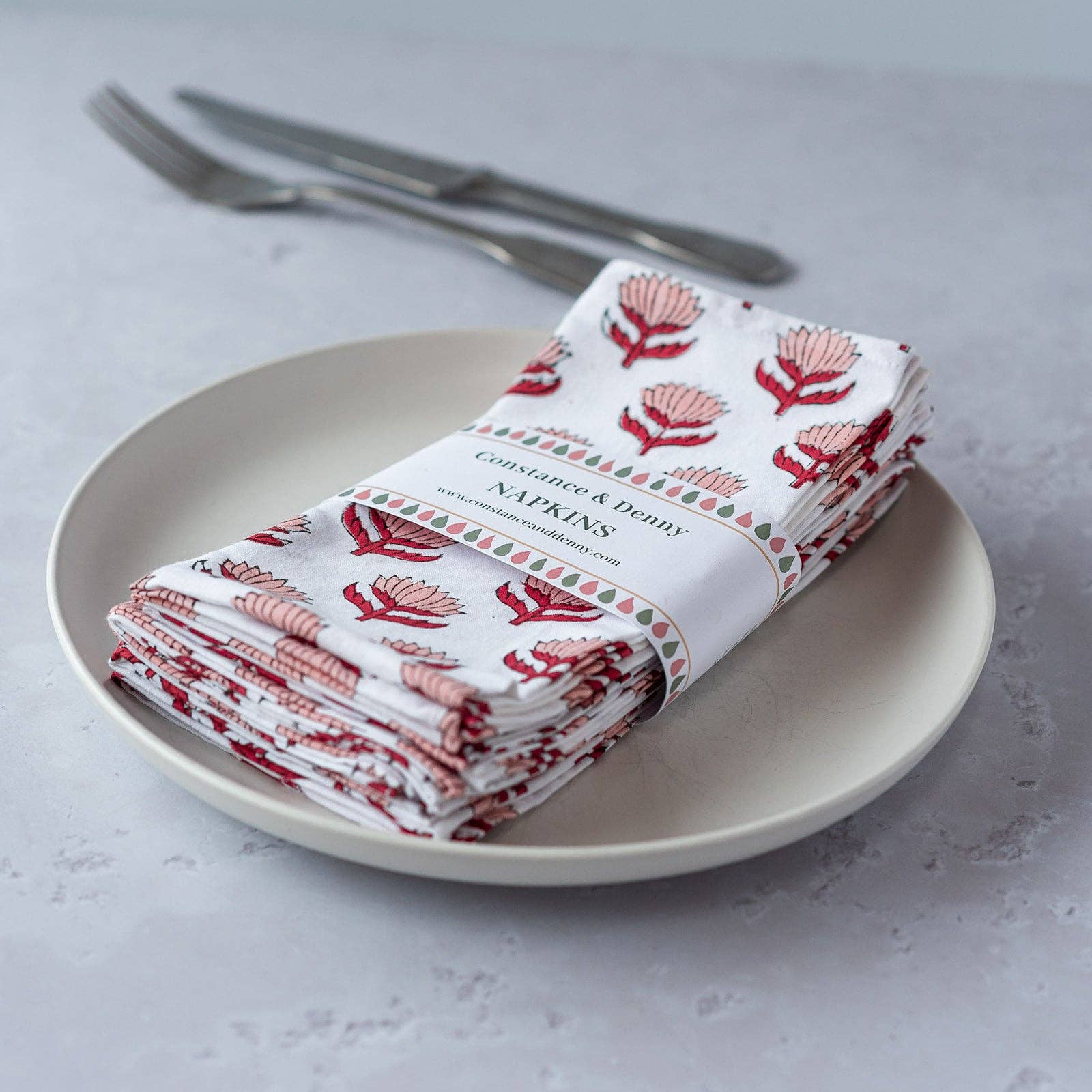 Lotus Flower Cherry Napkins (Set of 6) – Handmade Cotton Table Linen