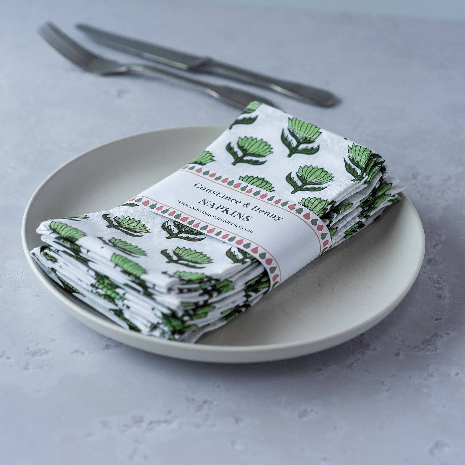 Lotus Flower Green Napkins (Set of 6) – Handmade Cotton Table Linen