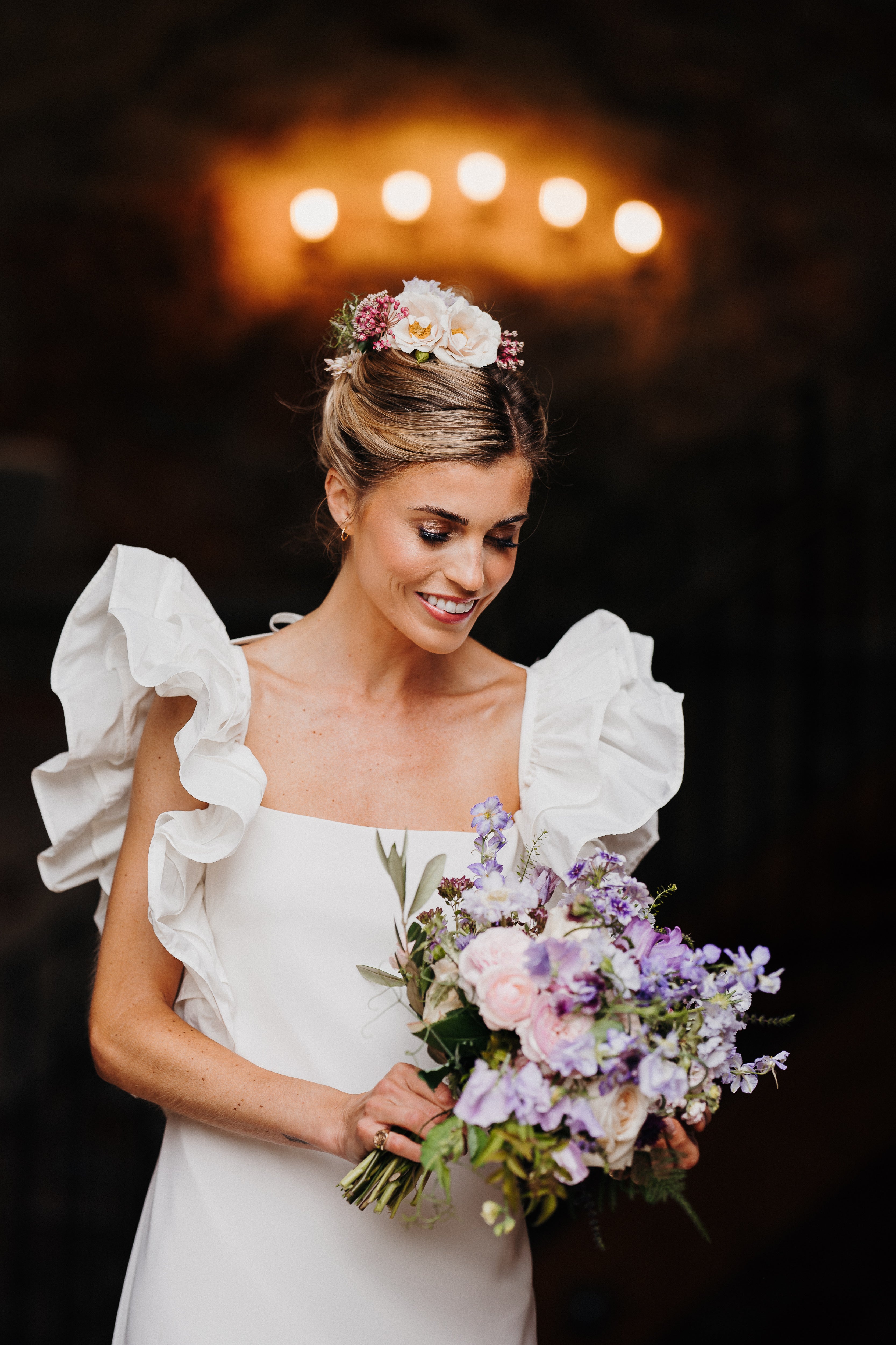 Our most popular bridal bouquet is medium in size. Designed as a hand tied bouquet with beautiful seasonal flowers before finishing off with a classic ribbon handle in coordinating satin ribbon.