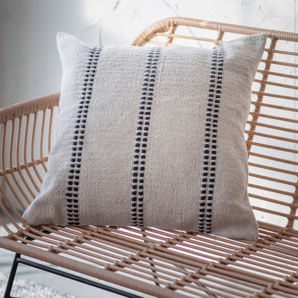 Natural cotton with a subtle Ink coloured stitch stripe make this Whickford cushion the perfect choice when accessorising indoor and outdoor seating.